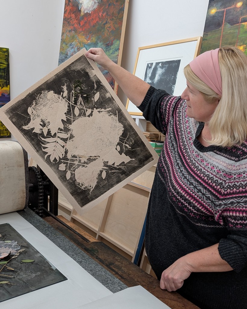 Are you thinking about a printmaking activity or a project in the works in your future? You are welcome to come by, check out the different ways you can print at the studio or be involved as a member or just hang out for the conversation. So why not drop in after your market shopping and play with us?